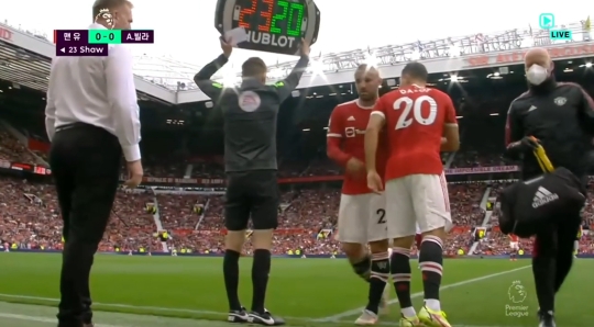 전반 33분 다리에 통증을 느낀 루크 쇼가 결국 주저앉으면서 달로트와 교체되었다.