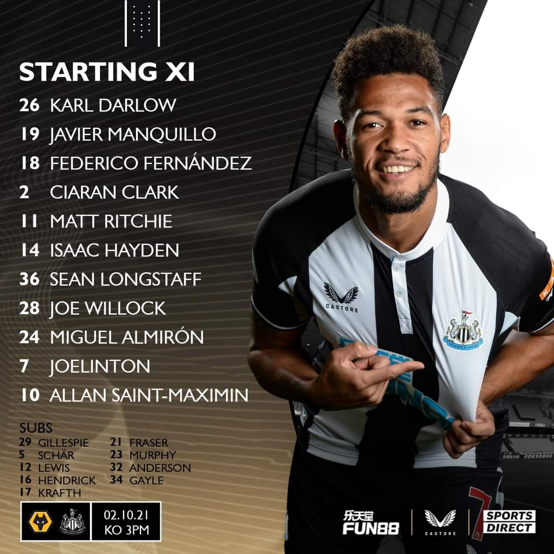 뉴캐슬은 저말 루이스 대신 맷 리치가 계속해서 윙백으로 나오고 있으며 조엘린톤과 생 막시맹이 울브스의 골 망을 노렸다.